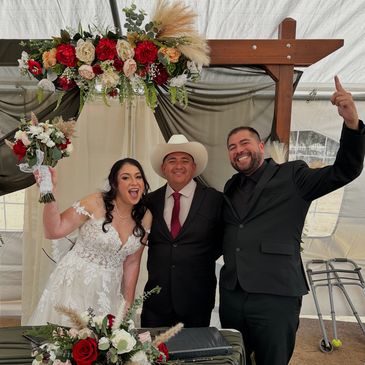 A no-fuss, heartfelt “I do” in just minutes. Say your vows, exchange rings, and make it official—quickly and intimately, with just the two of you and your officiant. Perfect for at-home or backyard moments. Marriage license required.