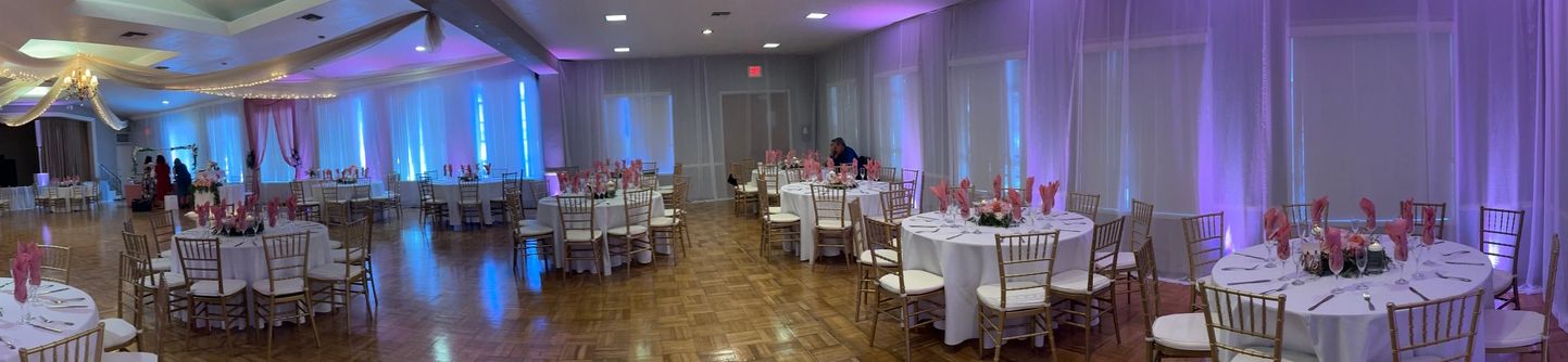 Lighting is one of the most important things that enhances a wedding reception. Imagine a solid warm color of your choice during dinner and toasts. Then those same lights now full effect glistening many colors to the beat of the music during the later hours as dancing the night away.